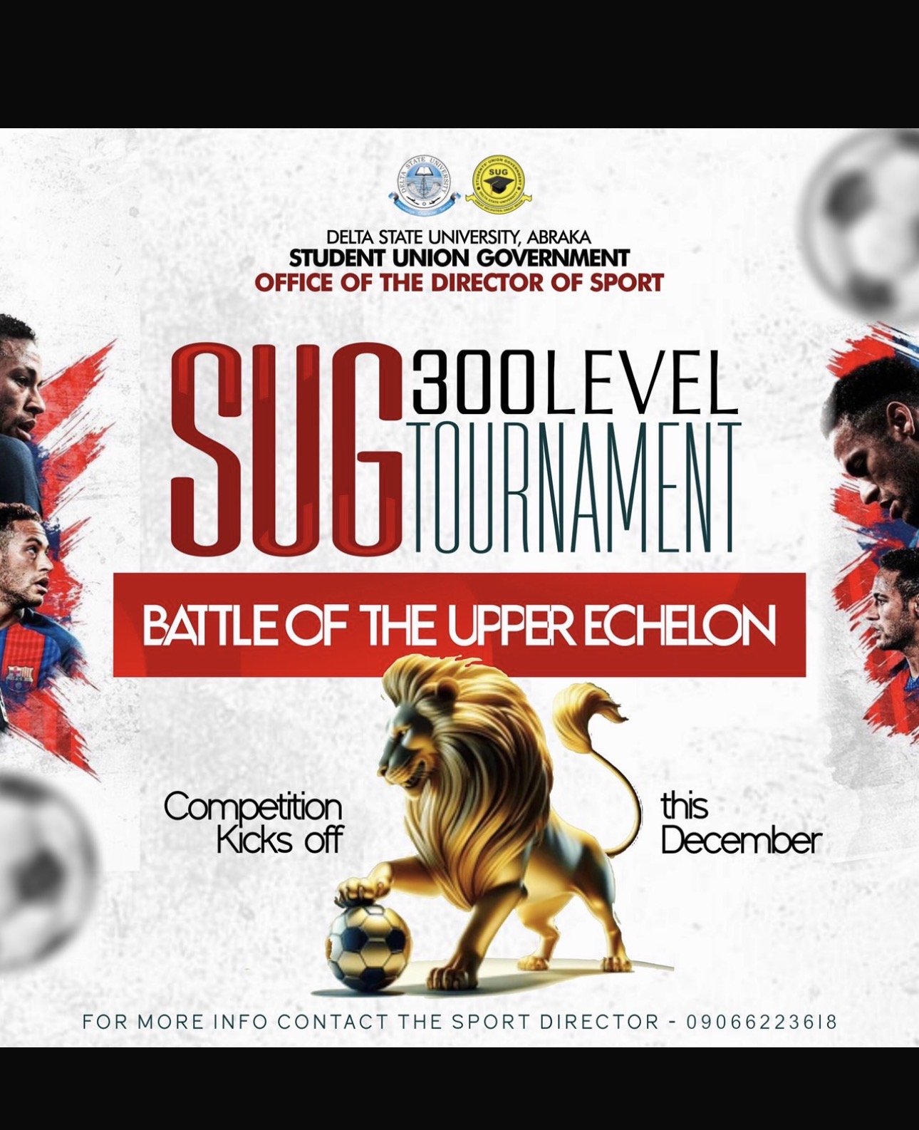 OFFICE OF THE DIRECTOR OF SPORT. INTRA LEVEL COMPETITION Reasons: 1. To discover new talents within each level 2. To give everyone in each level a chance to participate for there department. 3. Fair competition among competitors since it's level playing same level 4. To form a better team for later times. Benefits: 1. It allowed more students to play because each level can form multiple teams 2. It helped the department discover new talent easier rather than calling out for training. 3. It created bond among course mate 4. Prizes were given to encourage th players to participate more. 5. It allowed the players to relieve themselves from School stress. .